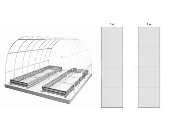 Размеры грядок изготавливаются с учетом фундамента и размеров теплицы. Ширина грядок по 1 метру.Длина грядок на 25 см меньше длины теплицы, чтобы легко установить грядки в теплицу с любым фундаментом.